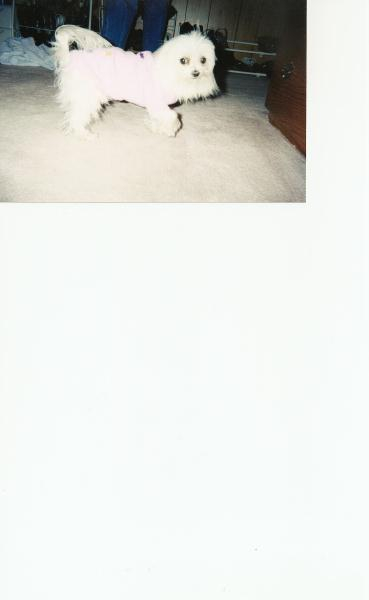 Mandy (Maltese)is used to a metal wire crate. She is very shy and is scared of men. She is a rescue dog that was kept in a crate for four years. She has not bitten anyone to my knowledge. Patches is used to roaming around out property and has NEVER been caged.