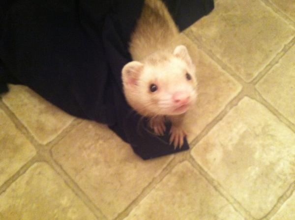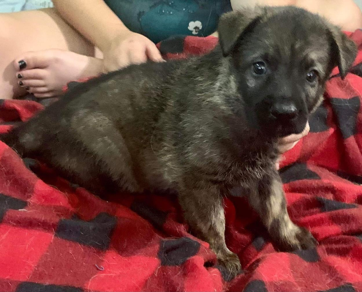 He is only a few weeks old and will fit in a small dog crate. About the size of a 6 week old lab puppy
