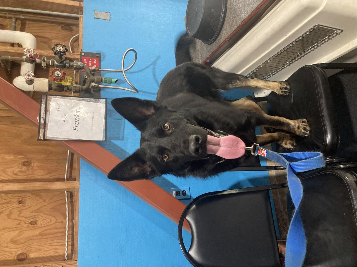 She rides very well! She likes people and dogs. She is 4 years old. Walks well on leash. Likes to snooze. Very cooperative dog. Not at all aggressive.