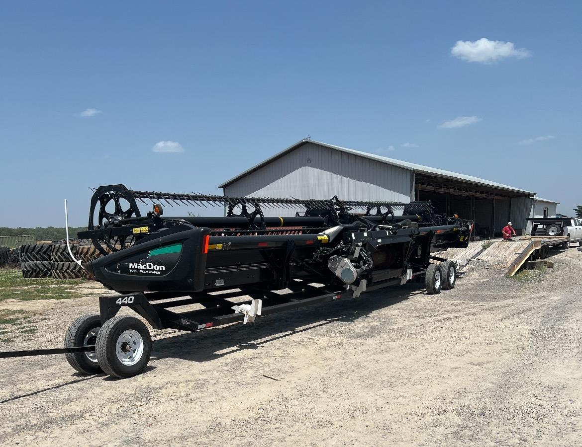 This header is also sitting on a header trailer and the entire rig can be loaded onto a step deck or flat trailer. Driver will need to furnish straps to secure the trailer to his trailer and the header to the trailer it is sitting on and the trailer it is being hauled on. total weight is around 10k lbs. there is some loose parts over in the header as well.
