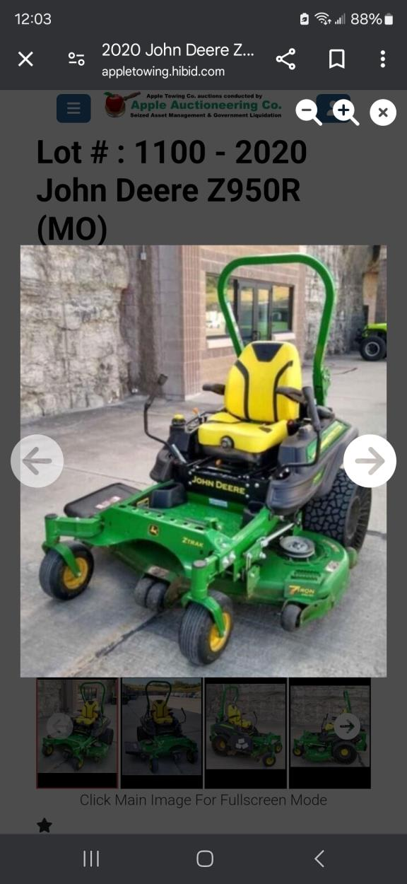 Zero turn mower, operational, can drive on off truck/trailer. ready to ship.