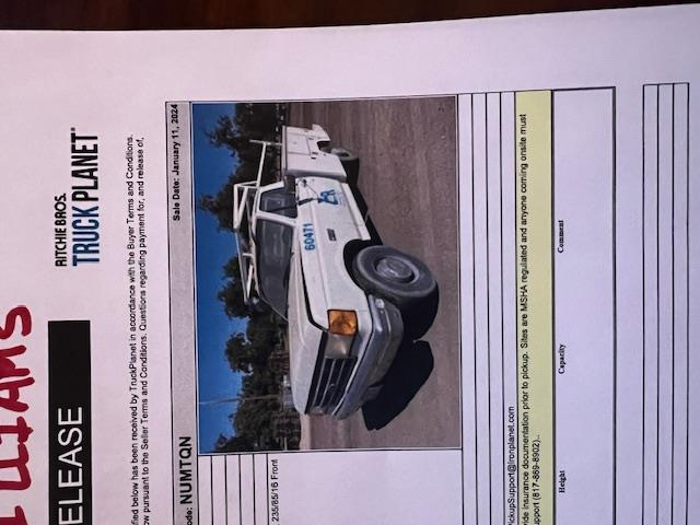 The truck was purchased at an Iron Planet auction. They will drive it outside the lot to be loaded on your trailer. Same at delivery is a commercial yard easy to unload. Flexible dates of pick up next week during business hours. Will arrange. Looking for $800 all inclusive. Thanks.
