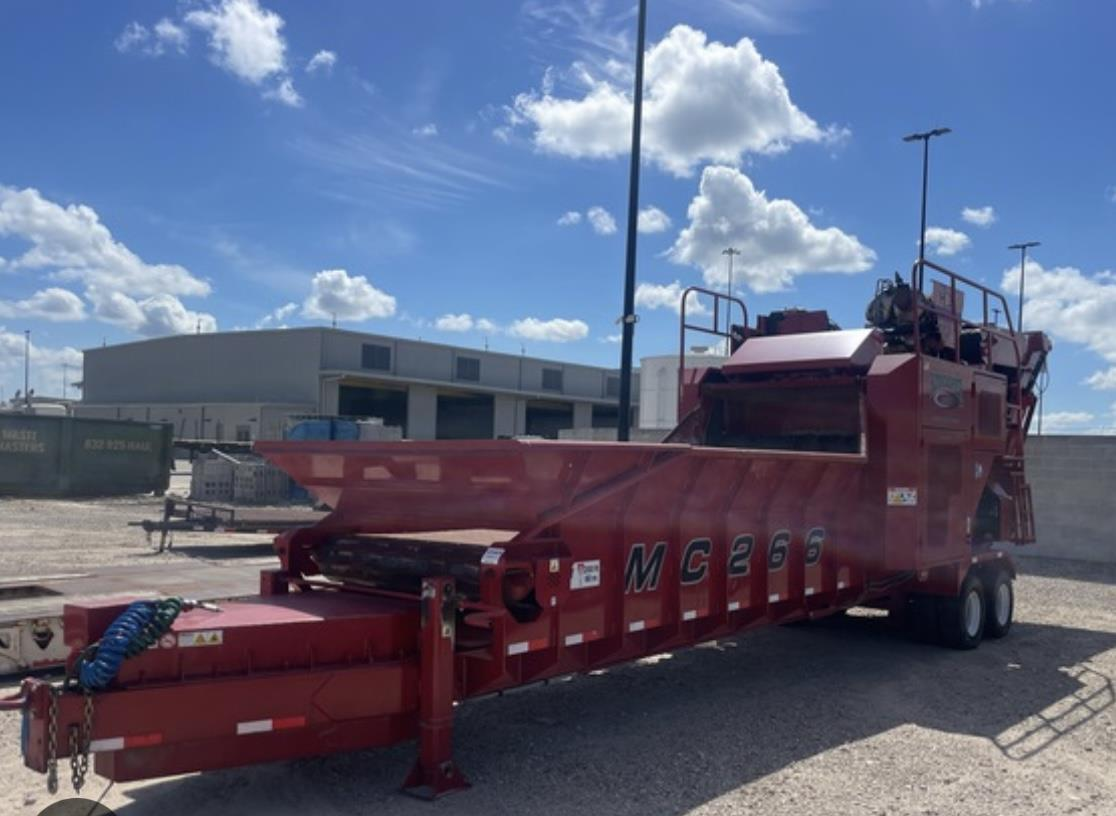 It is a tow behind debris shredder. it has a pintle hitch and dual axles. The picture is no the exact machine, but the same make, model and dimensions.