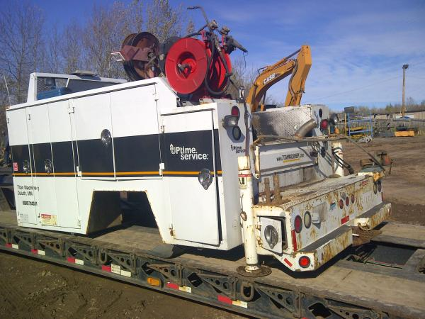There is a heavy duty truck bed, inside the bed is a crane and a couple of oil tanks that come with it. Its is all packaged up. Its fairly dirty and it has to go on a FLATBED of some kind.