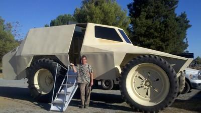 This was listed last week. I was told by the seller that it weighted 9k lb. I have sinse been told it is closer to 16-19k lb. The exact dimensions of the vehicle with the "smaller" tires are as followed...