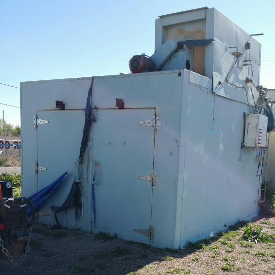 This is propane scrubber. Tank will not be shipped. The side that is open will be boarded up. It needs to be lifted or moved from the ground with pallet jack or fork lift to the common dock of building. It is on a pallet. Machine weighs 320 lbs. I am guessing the crate adds 200 lbs to weight. However that is only a guess. Building has a common dock on building. I do not have a pallet jack to get it there. It is being shipped to a business with a dock.