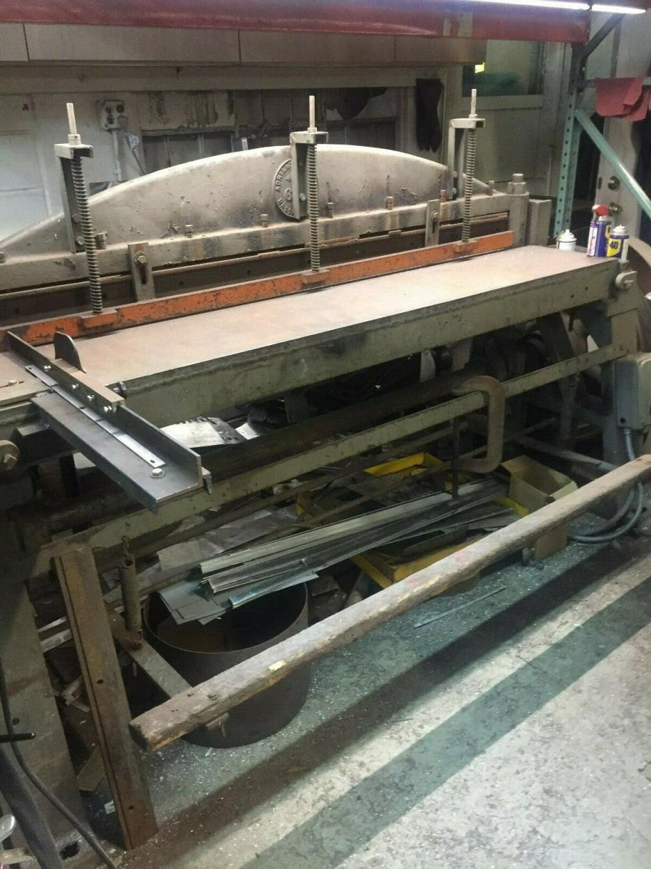 The shear is 5'wide, 8'long and 5'high and weighs 3000lbs