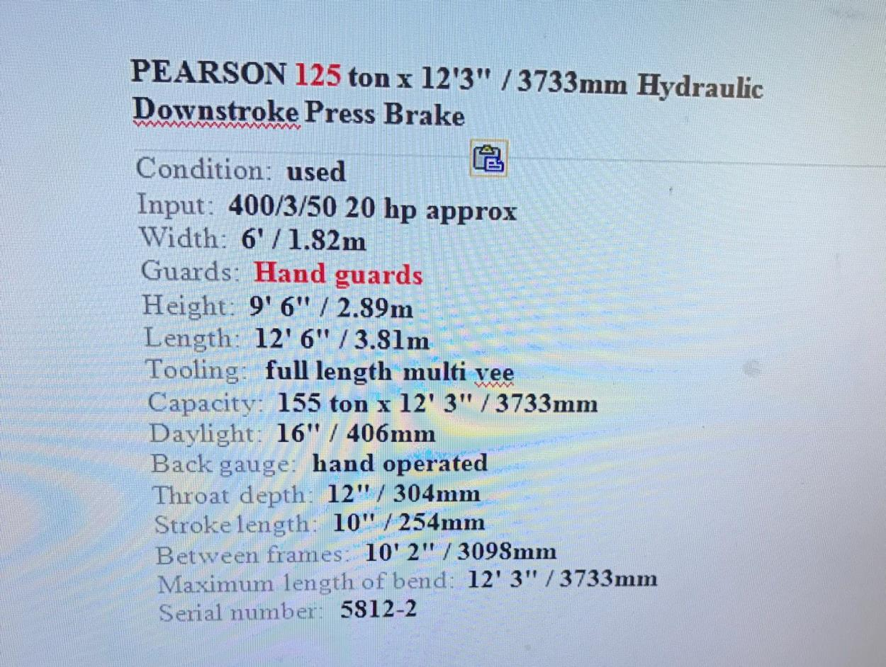 This is a new CNC Press brake machine being built at the OEM factory in SD. Machine will need to be loaded on flatbed with good tarping to protect machine and electronics. Riggers will be onsite at both locations to load and offload.