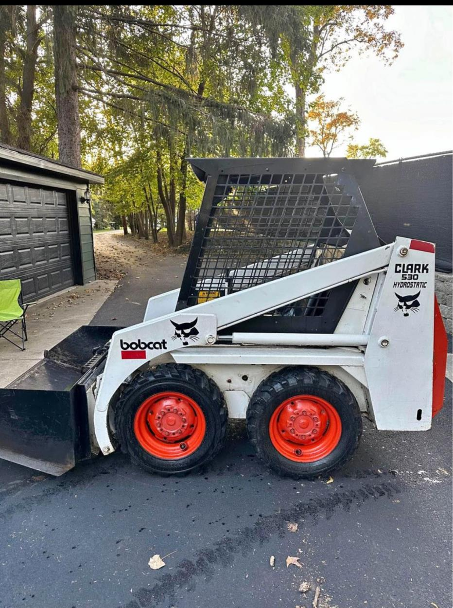 Bobcat Skid Loader with extra set of (4) tires and filter kit. Comes with bucket on the machine.