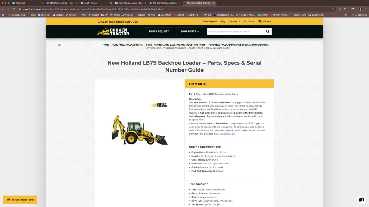 It is in good operating condition and must be hauled on a trailer that has ramps to drive it on and off. This load must be picked up from 0900 and 1000 on Monday morning 10-20-2025