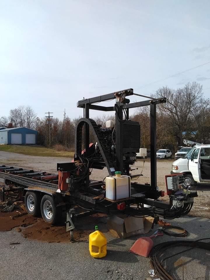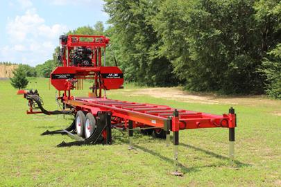 The Edger will have its wheels removed and strapped to the deck of the sawmill. The log deck does not have an axle or wheels and will be strapped behind the sawmill. The total length is 50', tallest height is 9', and they are 8' wide.