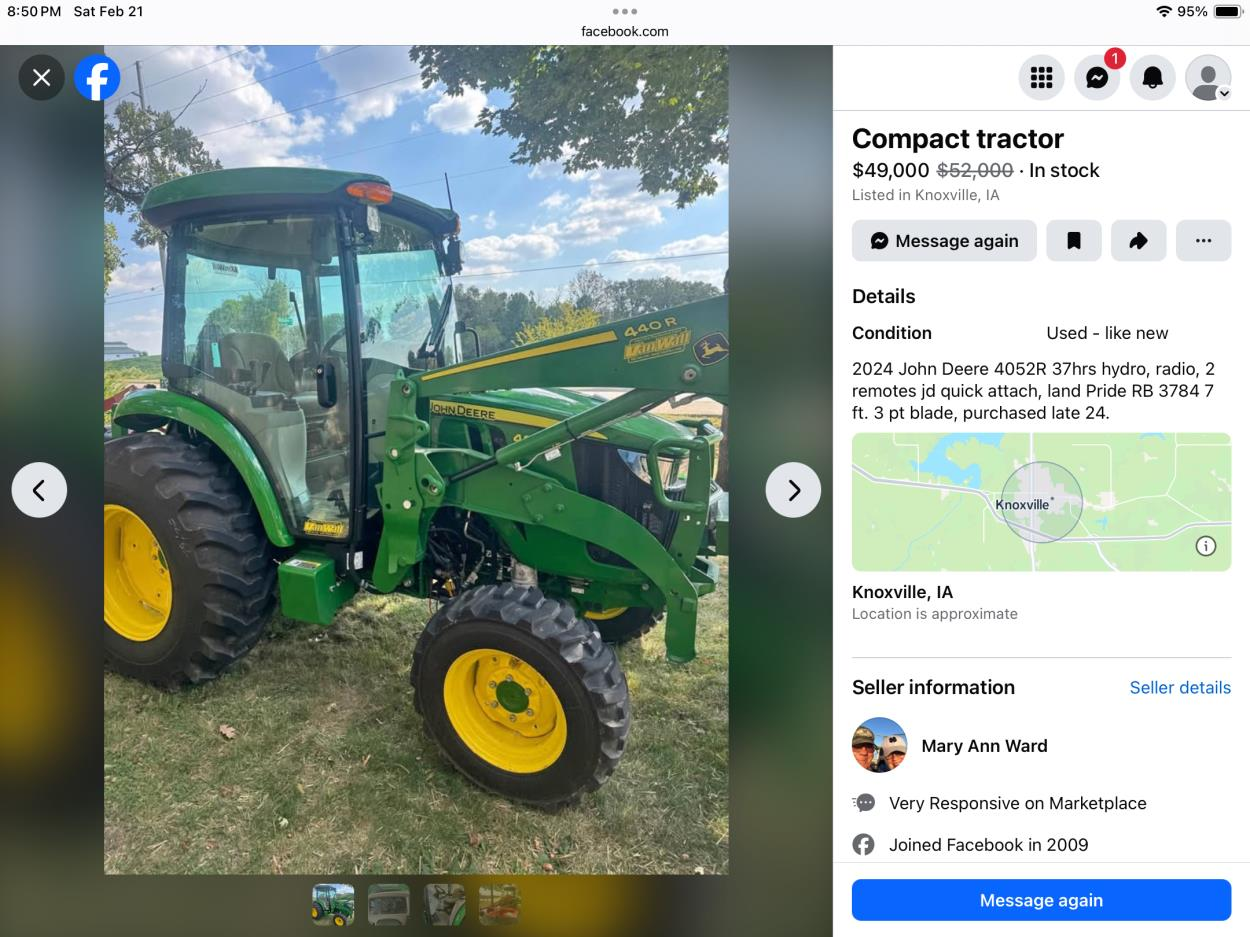 Tractor to be loaded by seller and unloaded by buyer. Hauler needs to call the buyer and seller when they arrive to pick up the tractor.