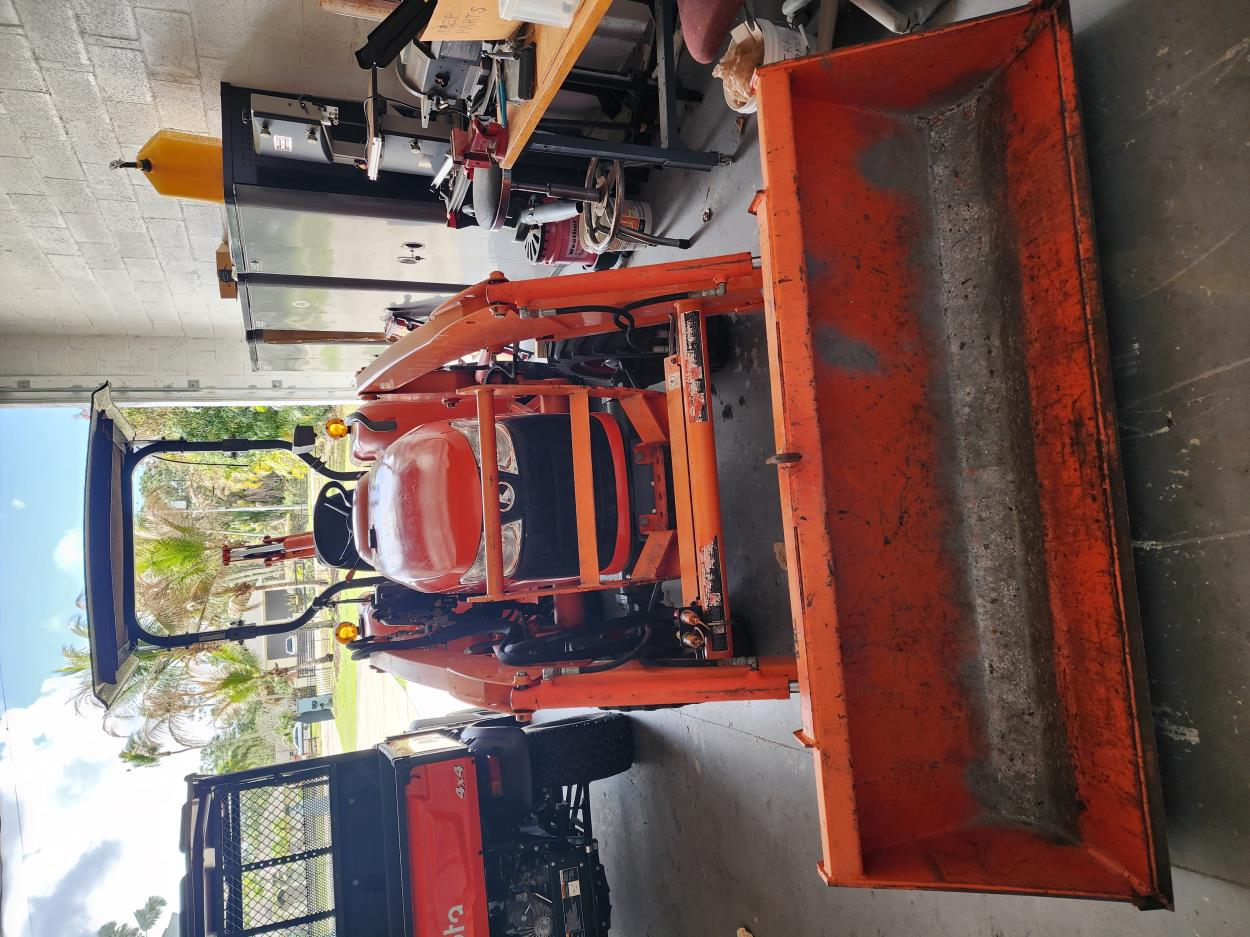 Kubota Sub-Compact tractor with mower, loader, and backhoe. Combined weight is around 3750 lbs. Overall dimensions are 13.5' long x 5.5' wide x 5.5' high. ROPS will be folded down to be the 5.5' height. Photo is of the actual tractor. Fully functioning (starts, runs, drives)!