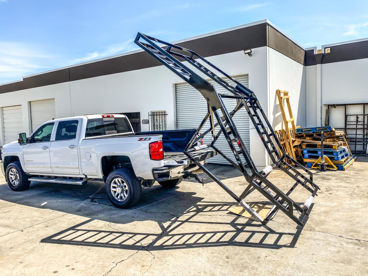 utv truck rack with ramps and hardware comes fits standard bed easy to move around weights is only 350 lbs VERY LIGHT AND EASY TO MOVE AROUND.