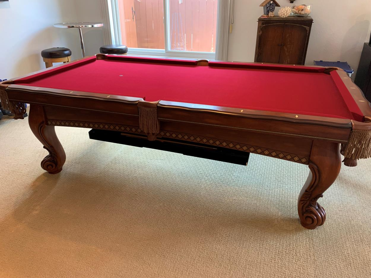 The three pieces of slate will be crated and the pool table broken down. Separate items include two bar stools and one table stand. Top of table shown in picture is already at location so will not need to transport.