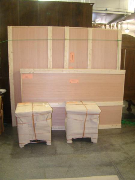 The head board is also 7"3 and 4"2  and 8 inches wide and is crated also, its weight is 250. The night (2) stands are 28 inches high 24 wide and 24 deep and weight is 30 pounds a piece.