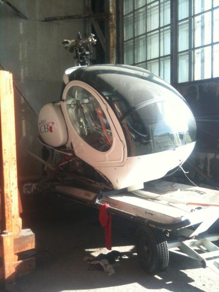 HELICOPTER IS ON A PALLET. TAILBOOM, BLADES, AND SKID GEAR ARE OFF THE HELICOPTER. TAILBOOM IN 2 SECTIONS WILL BE INCLUDED IN TRANSPORT. NO BLADES TO BE TRANSPORTED.