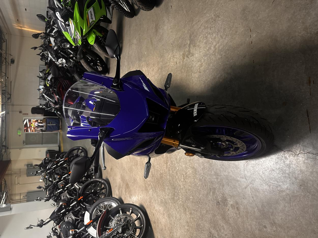 The bike is a new 2025 Yamaha YZF-R7 in Team Yamaha Blue--VIN# JYARM38E5SA017267