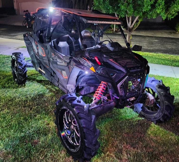 I don’t have any photos now, but you it is a small side by side honda 520 pioneer, 5ft wide by 8ft long and a full size dirtbike. Both are brand new at a dealership