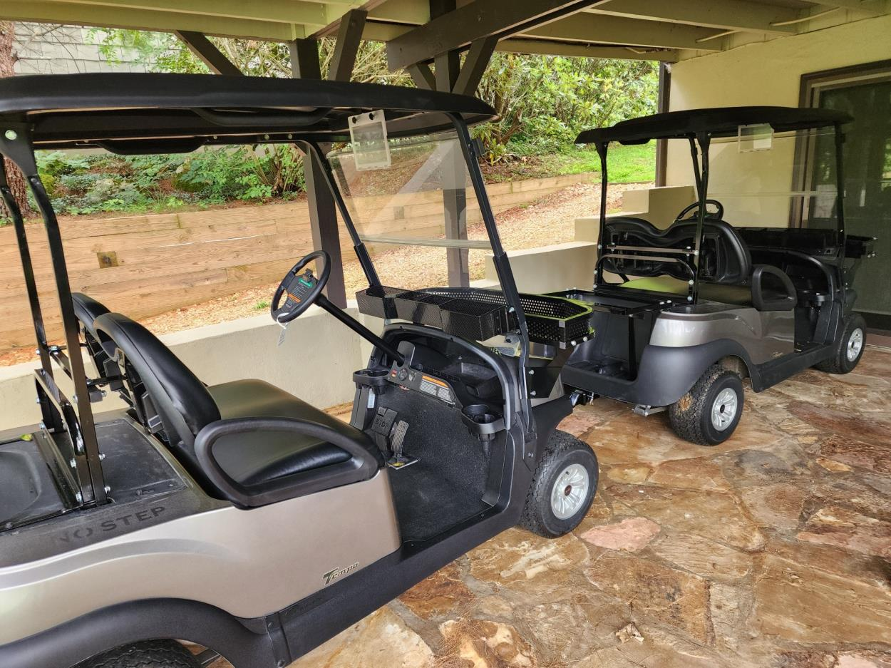Two lifted six passenger golf cars being delivered to two different addresses in the same city within 10 minutes of each other