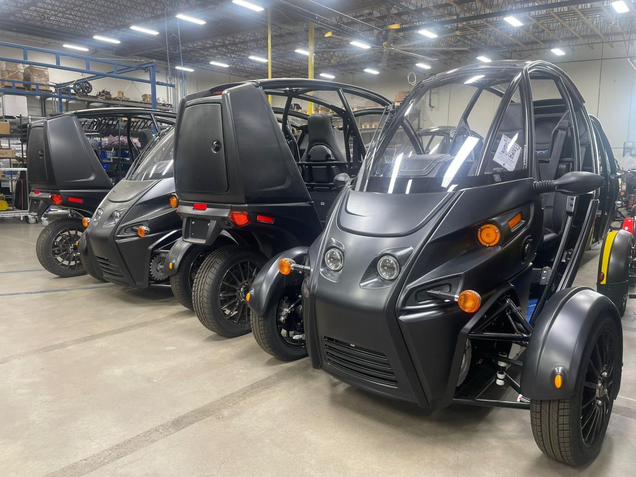 The Arcimoto FUV (Fun Utility Vehicle) has a length of 114 inches (2,896 mm), a width of 59 inches (1,499 mm), and a height of 67 inches (1,702 mm). Its curb weight is 1,799 lbs (816 kg).