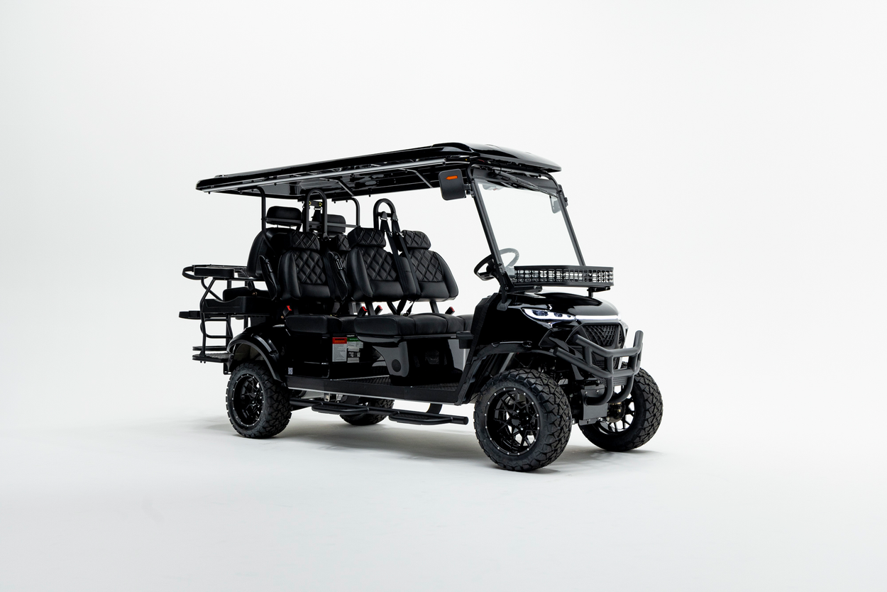 Bolt XL - 6 seater Height 79" Length 146" Width 55" Ground clearance 5.5" Wheel base 96" GVWR 1,100 pounds Weight 1278 pounds