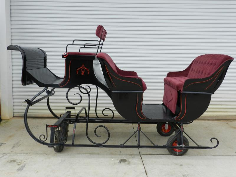 above measurements are for the (1) hearse (shown). Also: (2) Snake oil buggy 8'L 5'3" L 7' H 300 lbs, (3)Chuck wagon 11'L 4'W 5'H 800 lbs, (4) manure spreader 13' L 5' W 5'H, 1000 lbs.