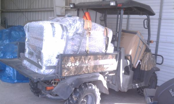I am shipping a Kabota RTV 900 utility vehicle with a pinball machine and additional boxes loaded and secured in the vehicle.