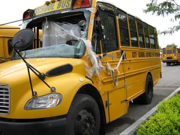 Bus is damaged, windshield is busted, busted rear window, other damage. starts n runs.