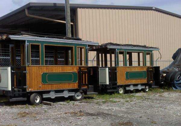 Rubber-tired people-mover trams. May be hauled in two different shipments. One weighs 4000#, the other weighs 3300#. We are flexible on pickup and delivery dates.