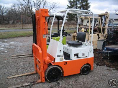 Shelving is on pallet, orange is appox. 30"x30"x10', green is approx. 36"x36"x10'. Fork lift wieghs 8,250# and shelving maybe 400#