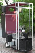 This is a horse drawn trolley. It is on rubber tires. It is about 14 ft long x 6.5 ft wide x 8 ft tall. The top can be lowered to make it shorter if needed. I am very flexible on the pickup and delivery dates. I would prefer this be hauled in an enclosed trailer if possible.