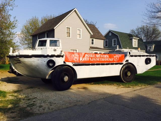 See https://en.wikipedia.org/wiki/LARC-V for more pix and specs. It drives fine and has a 20" road clearance, can drive onto most drop or double-drop decks that are long enough. Or a lowboy.