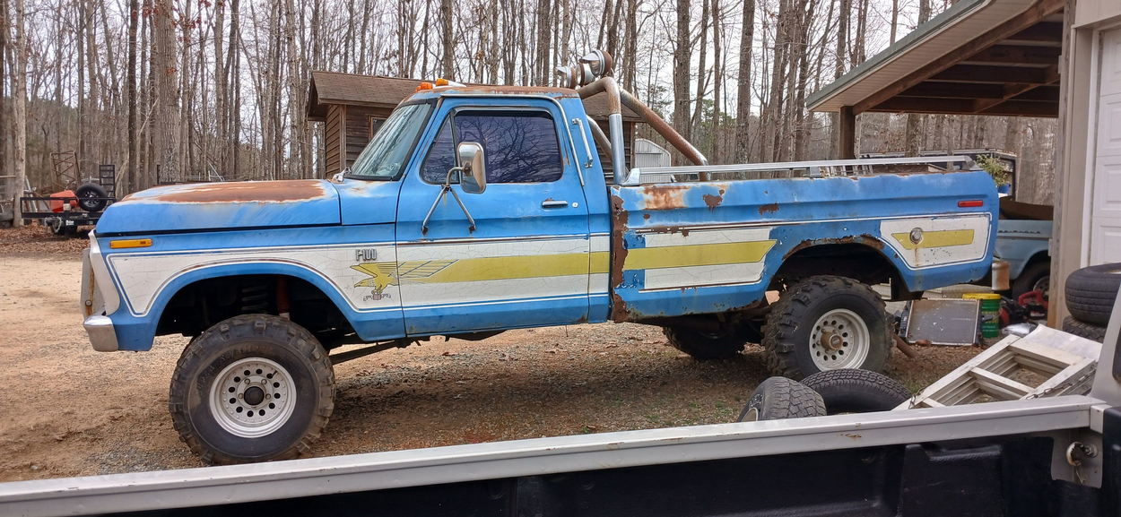 Buyer is commissioning transport - will need to coordinate with seller for final pickup details. Vehicle does not run. Tires hold air, brakes work, engages in park properly. Steering is questionable (rag-joint is deteriorated). Vehicle marked as "modified" due to roll-bar lights and oversized tires affecting total height. Door tag shows GVWR at 5550, actual weight is probably around 4500lbs.