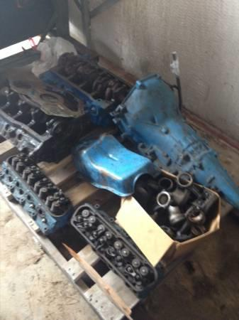1 PALLET OF 2 ENGINE BLOCKS, 1 TRANSMISSION, MISC