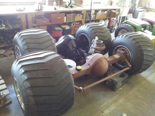 The 4 rims and tires. And the TAN axle. (NOT THE BLACK AXLE. The tires could stay on the alxe and make the total length 8'9".