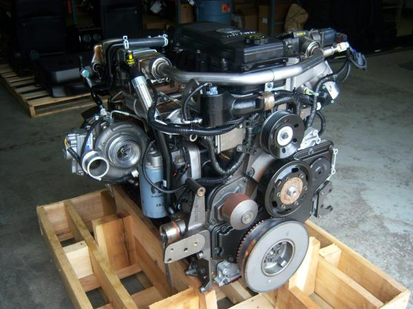 Engine short block assembly unassembled. Wooden crate on a pallet.
