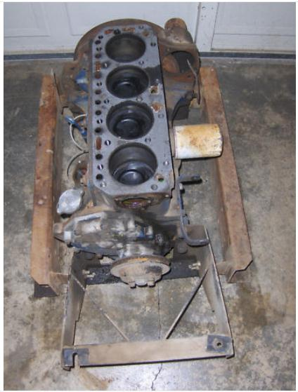 Palletized car engine. Enroute back to the JEGS return department. Has been drained of all fluids. Securely chained to standard pallet.