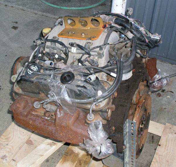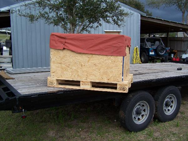 Engine and transmission parts. Crated on a 48 by 40 pallet and is 29 inches in height. Weight is approx. 400 lbs.