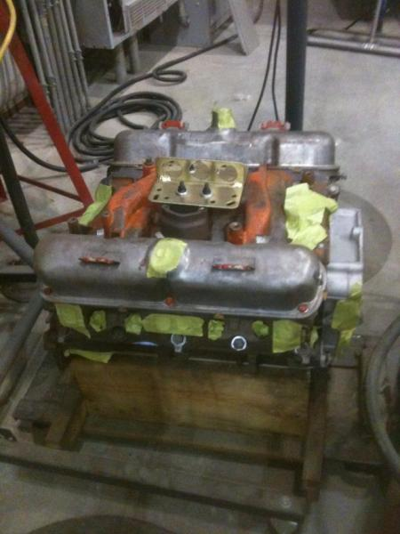 The long block is on a pallet and there are four additional boxes of intake parts.