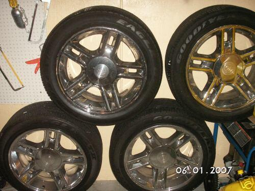 SET OF FOUR WHEELS AND TIRES FOR HARLEY DAVIDSON F150 TRUCK. THE APPROXIMATE WEIGHT IS 100 LBS FOR EACH WHEEL AND TIRE