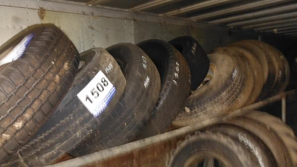 Approx. (10) Tires on Top of Rack 1, Various Sizes, Some w/ Rims. (Located in C-2)
