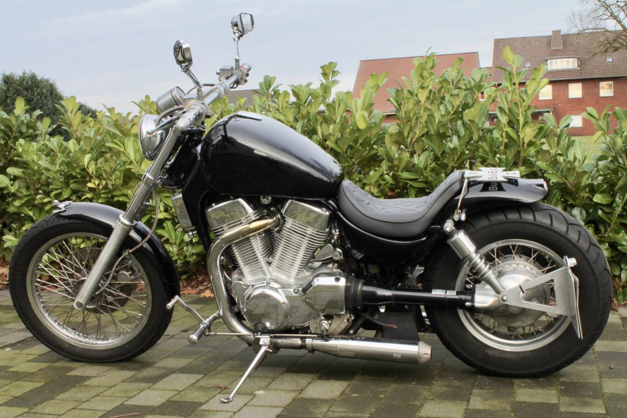 Ws handewlt sich um ein Oldtimermotorrad, Motorrad ist roll- zund lenkbar, Reifen allerdungs platt.