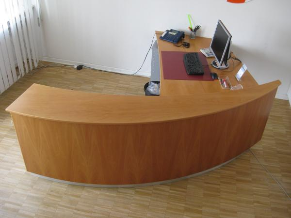 Schreibtisch 175 L, 75 H, 95 T Bücherschrank 290 L, 170 H, 45 T (hinten im Bild)