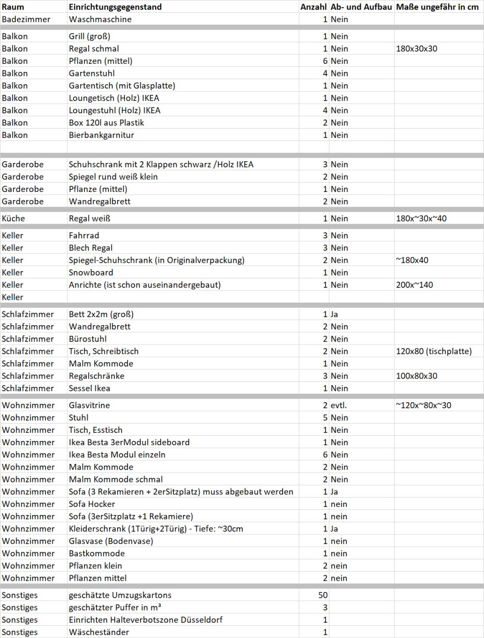 Abholung am 01.01.2019 bis spätestens 13:00 Uhr, da die Wohnung bis 14:00 Uhr geräumt sein muss. Abholung auch vor dem 01.01. möglich, Lieferung jedoch nicht. Zu transportieren: 6-8 Umzugskartons 4-6 kleinere Kartons 1 Hantelbank (zusammengeklappt) 3 Monitore 27 Zoll in Originalverpackung 1 Computer 1 kleiner Schreibtisch (zerlegt) 1 Bürostuhl 1 Fahrrad