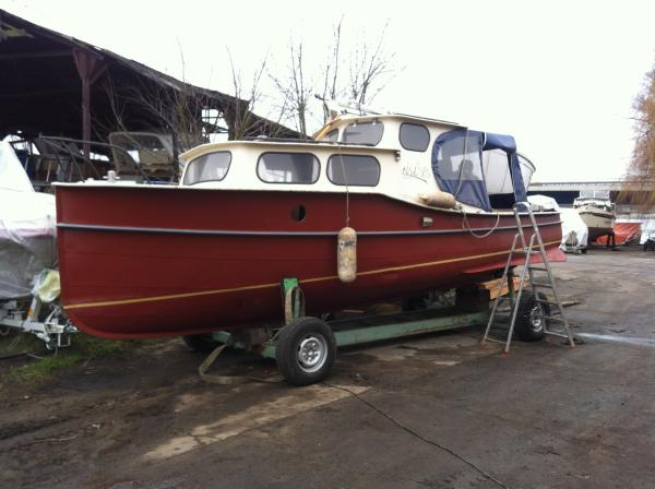 das Boot steht auf einem Hafentrailer. Es ist ein Kran zum umladen vor Ort. Bitte machen Sie sofort Ihr bestes Angebot. Danke..