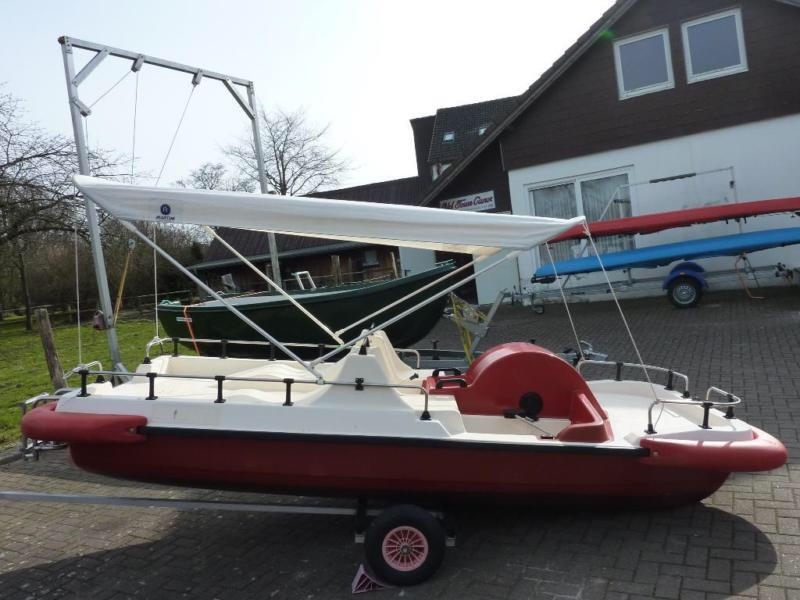 Zu dem Boot gehört ein kleiner Slipwagen , welcher sicherlich auf dem Boot mit Schutzhilfen transportiert werden kann . Siehe Bilder ! Das sonnenverdeck kann auch abgenommen werden .