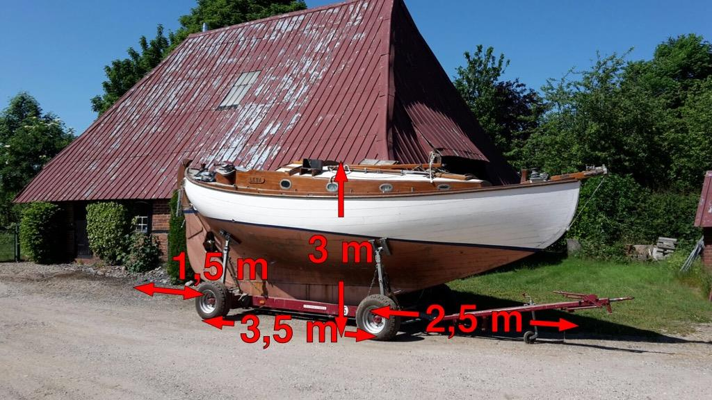 Es soll ein 8m Segelboot, das zu Zeit auf einem Hafentrailer steht (siehe Bild), samt Hafentrailer und Mast von Weyhe nach Konstanz transportiert werden.