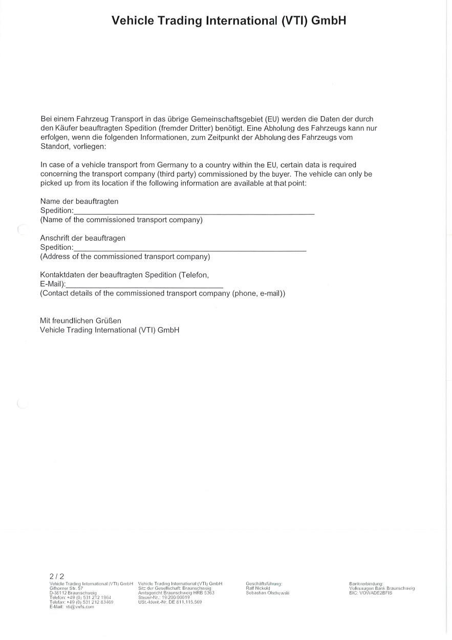 Bitte 24 Stunden vor Abholung des Fahrzeugs die Abholung anmelden.