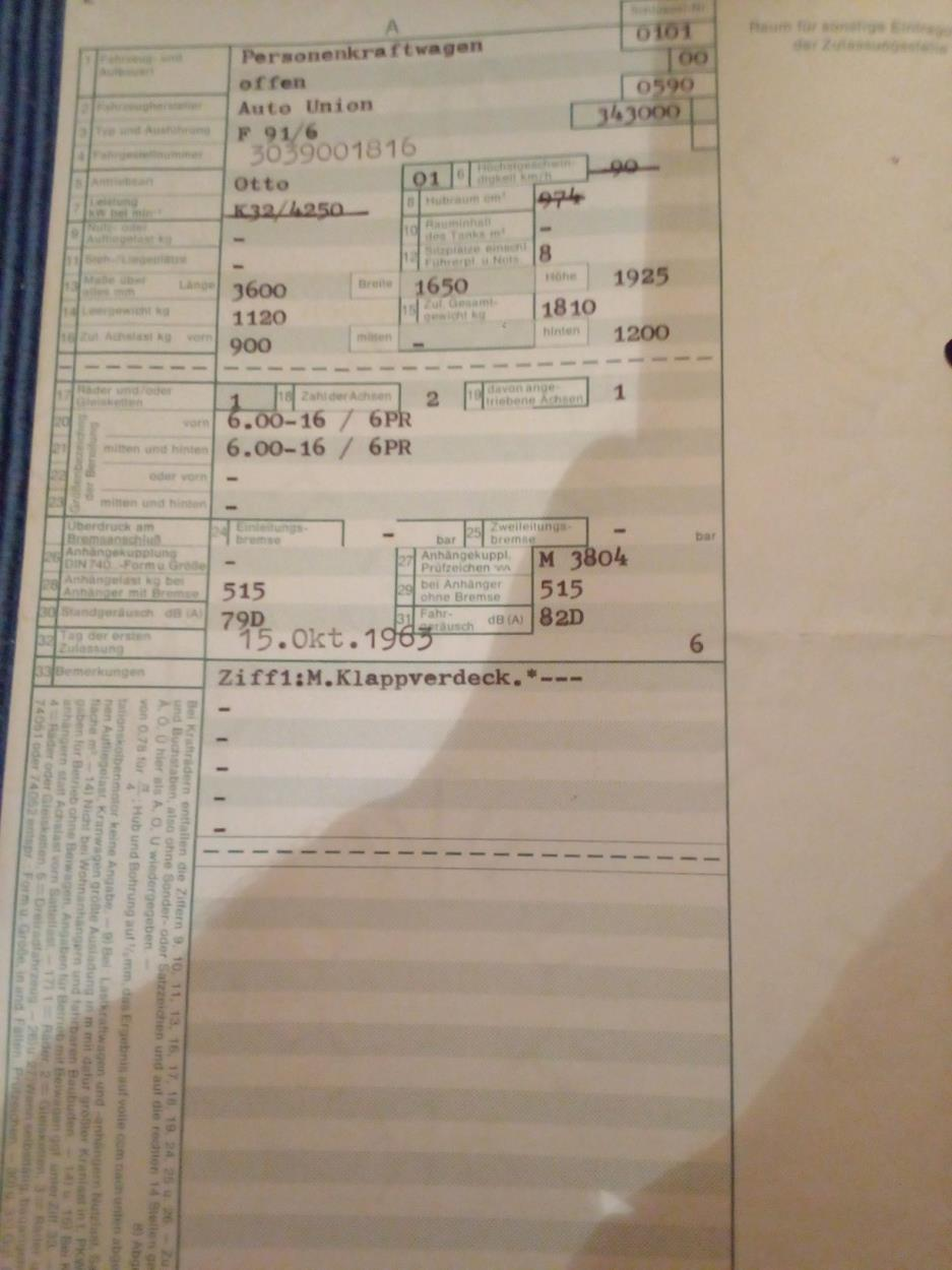 Vehicle Registration papers has to be with the car (FZG Brief und Schein)